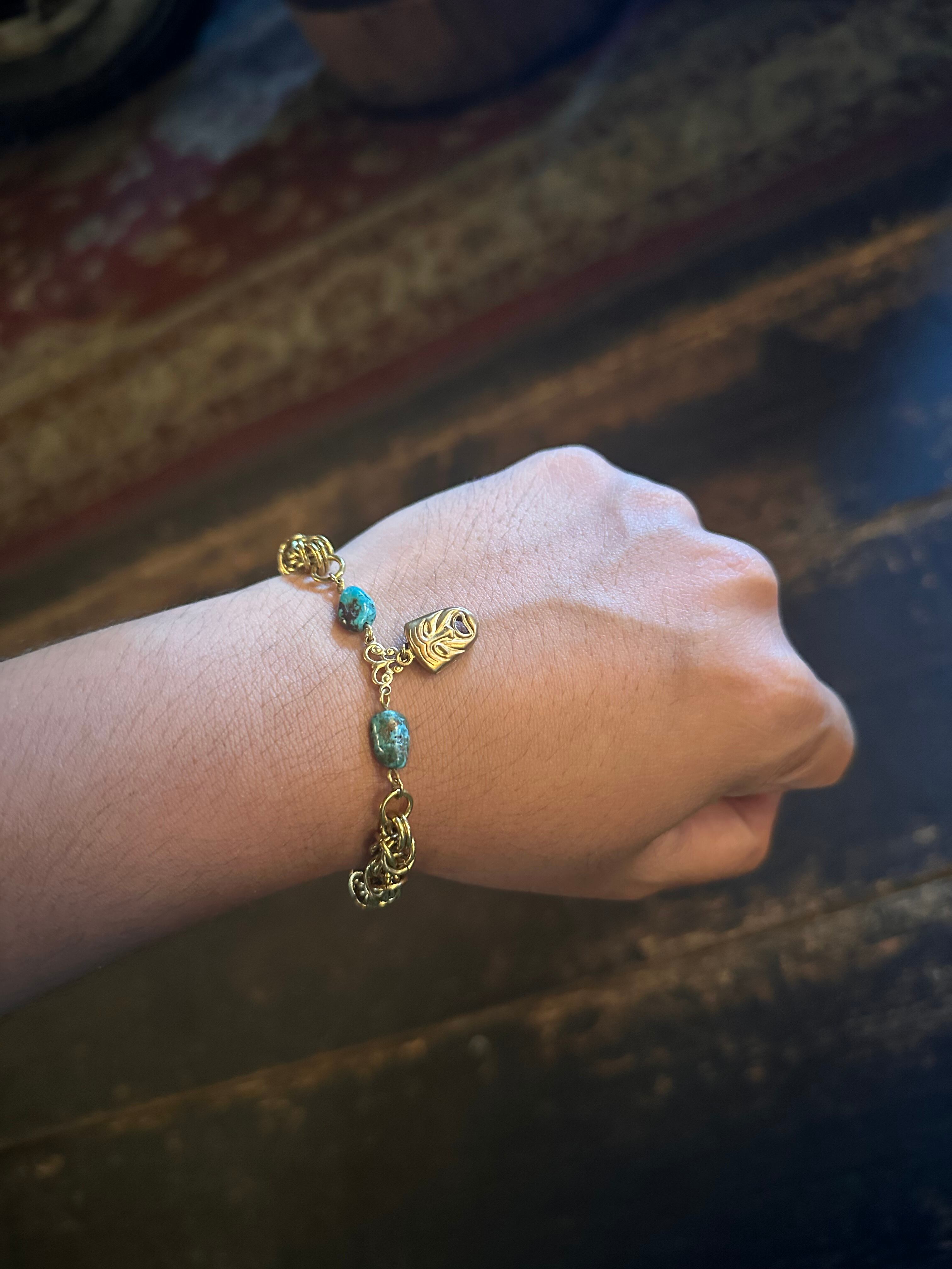 【Chainmail Bracelet – Peace Mark & Turquoise】
